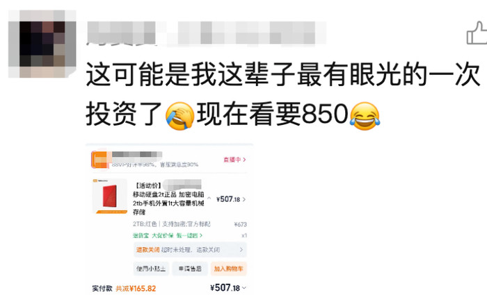 近日,有人发现,去年花400多元买的移动固态硬盘,现在要花800多元才能买到!涨价幅度堪比黄金!